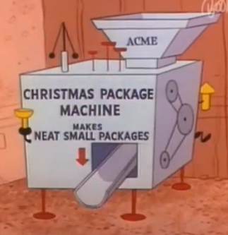 - Description: A machine that, no matter what goes into it, is packaged up with Christmas wrappings.